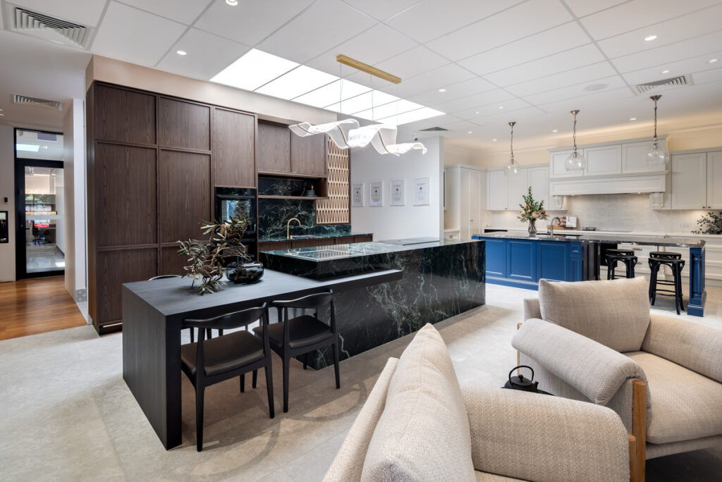 The opening of our Malvern showroom marks the next stage. Designed as an immersive space, the showroom features more than a dozen kitchen, bathroom and laundry displays. Each has been created to reflect real homes, showcasing practical layouts, material combinations and functional design solutions.